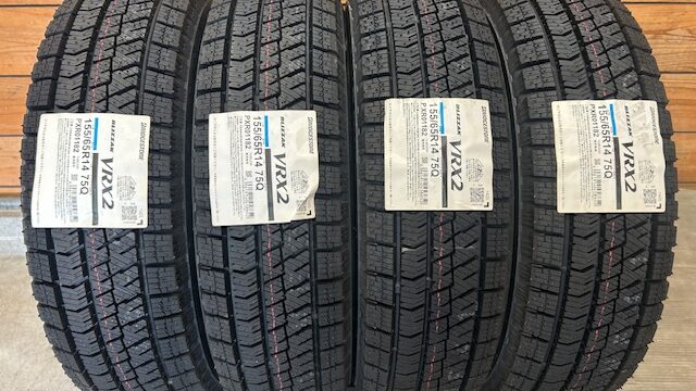 14インチ タイヤのみ4本¥29700-(税込) ブリヂストン ブリザック VRX2 155/65R14 23年製 未使用 冬タイヤ スタッドレスタイヤ 14インチ 軽自動車 ブリヂストン 23 年製ブリザック VRX2155 / 65 R 14 タイヤ4本価格¥27,000税込価格 (¥29,700)工賃4本税込 エアーバルブ4本税込 タイヤ処分4本税込¥6,600 ¥2,200 ¥2,2004本組込仕... 2025.09.11 14インチ冬(スタッドレスタイヤ)新着情報